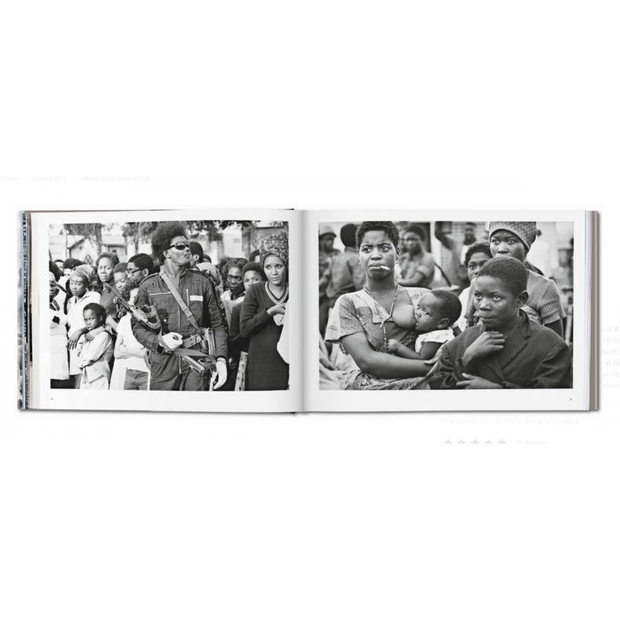 Οι σκληρές ασπρόμαυρες εικόνες της Αφρικής του Sebastião Salgado συγκεντρώνονται σε αυτή την αξιοσημείωτη φωτογραφική συλλογή, η οποία τραβήχτηκε σε διάστημα 30 ετών. Οι εικόνες αυτές αφηγούνται την ιστορία μιας ηπείρου που μαστίζεται από προβλήματα αλλά είναι εξαιρετικά πλούσια σε ιστορία και πολιτισμό. Με ταπεινότητα και διορατικότητα, ο Salgado μας παρασύρει σε πολλαπλές και διαφορετικές περιοχές που επιβιώνουν μπροστά σε περιβαλλοντικές και ανθρωπιστικές κρίσεις.